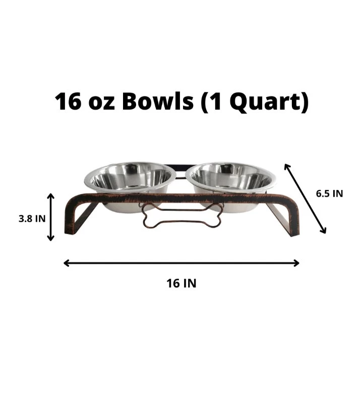 | Pick Your Item | Rustic Elevated Dog Bone Feeder With 2 Stainless Steel Bowls – 2 Quarts, Rustic Elevated Dog Bone Feeder With 2 Stainless Steel Bowls – 1 Quart |