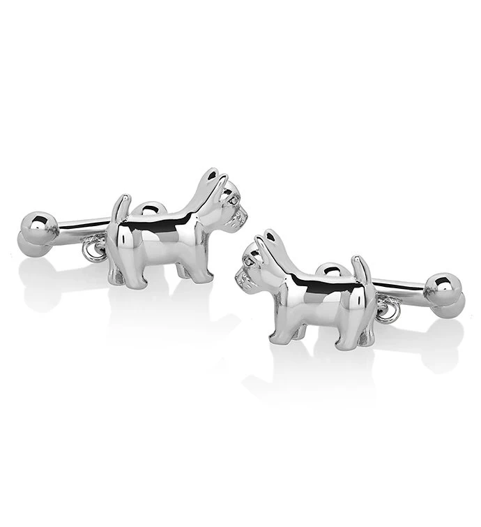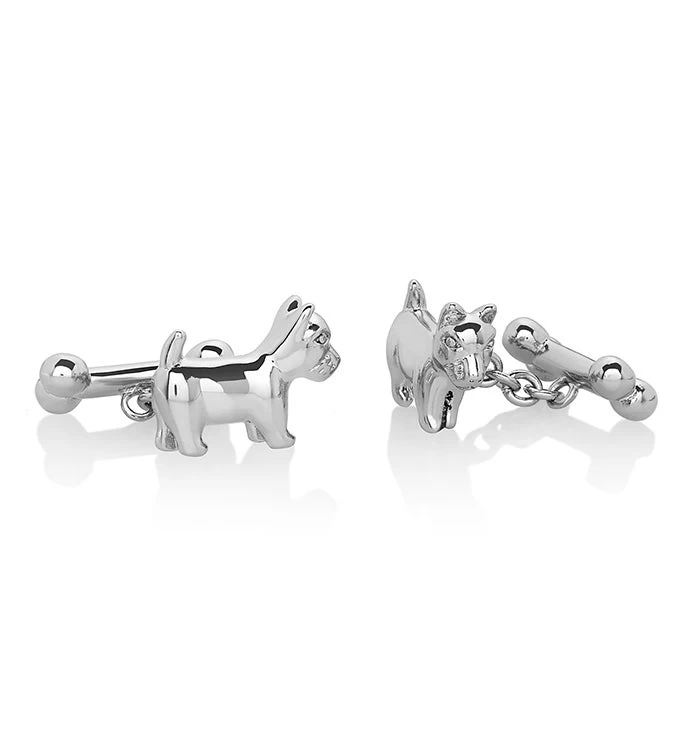 Men’s Polished Silver Tone Dog and Bone Cuff Links