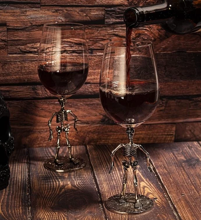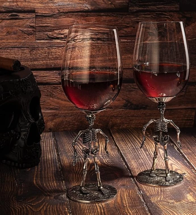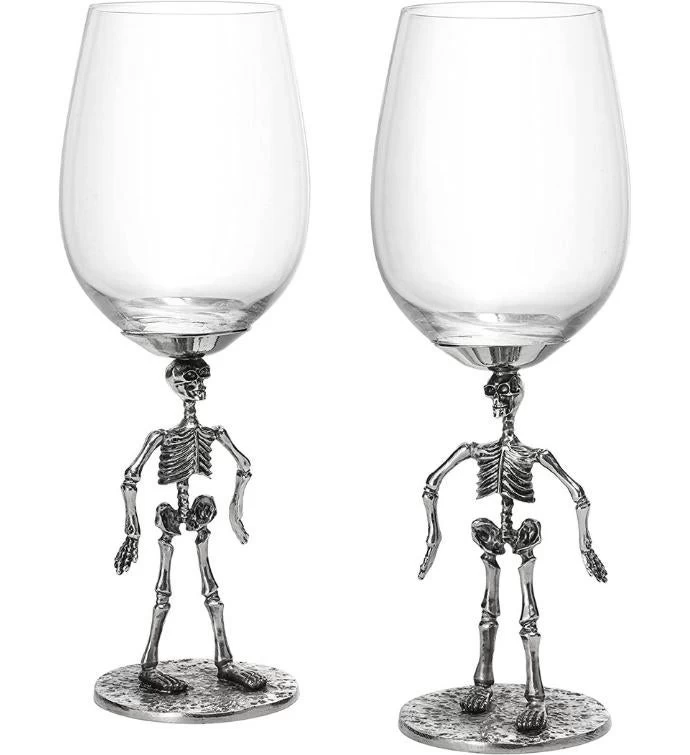It’s a ghoulish good time always with our Stemmed Skeleton wine glasses! A must have for Halloween or any time of the year you want to celebrate the macabre. Be a little more frightening at your next dinner party!