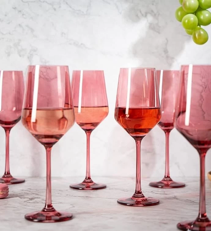 A colorful alternative to white wine glassware, this set of 6 colored wine glasses from The Wine Savant have a beautiful deep rich rose pink color. They are the perfect size for enjoying red wines, such as Cabernet Sauvignon.