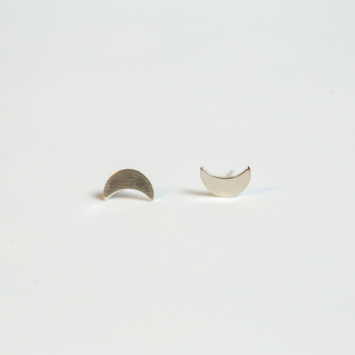 Sweet crescent Sterling Silver Moon Studs. Sold as a set.