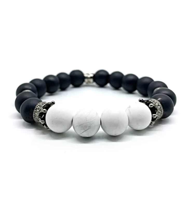 The Dreamer” Beaded Bracelet Inspired By Song, “Enter Sandman” -Quote: The real dreamers sleep with one eye open, dreaming up their next plan to take over the world.. You can kill the dreamer, but you can’t kill the dream.. -Made with 10mm Black Onyx & Matte Howlite Natural Stone Beads -Guitar String Ball End Accents -Born in the USA -Includes Song Card -Supports Music Education for Kids