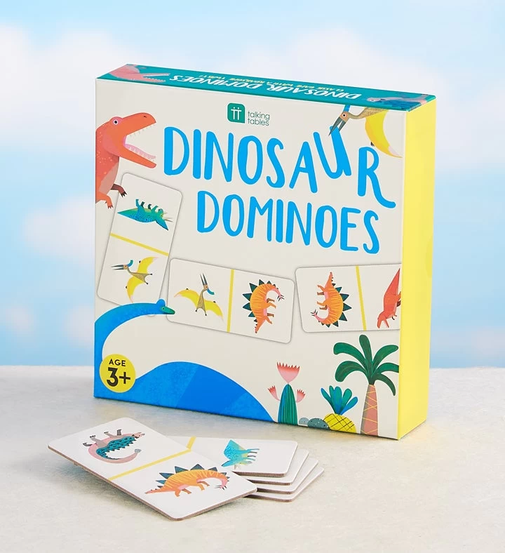 Hereâs a âdino-miteâ gift set, perfect for playtime. Our super-soft T-Rex plush rules the toybox with a roar. Heâs paired with a fun domino game to keep their imaginations from becoming extinct!