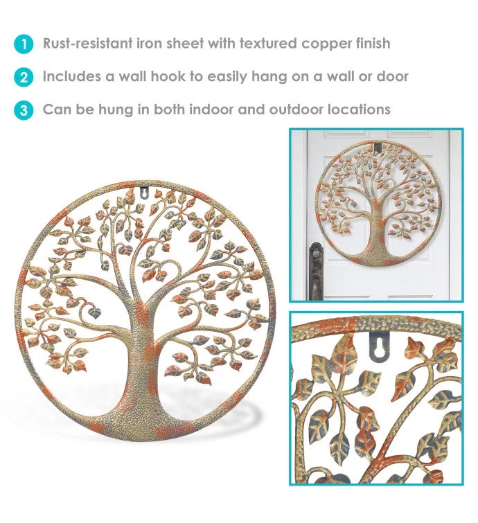 Sunnydaze Tree of Life Metal Hanging Wall Art. Includes 1 wall art piece. Iron material. Beautiful detailed branches. Dimensions: 19.5″ W x 0.25″ D x 19.5″ H; Weighs 1.2 lbs.