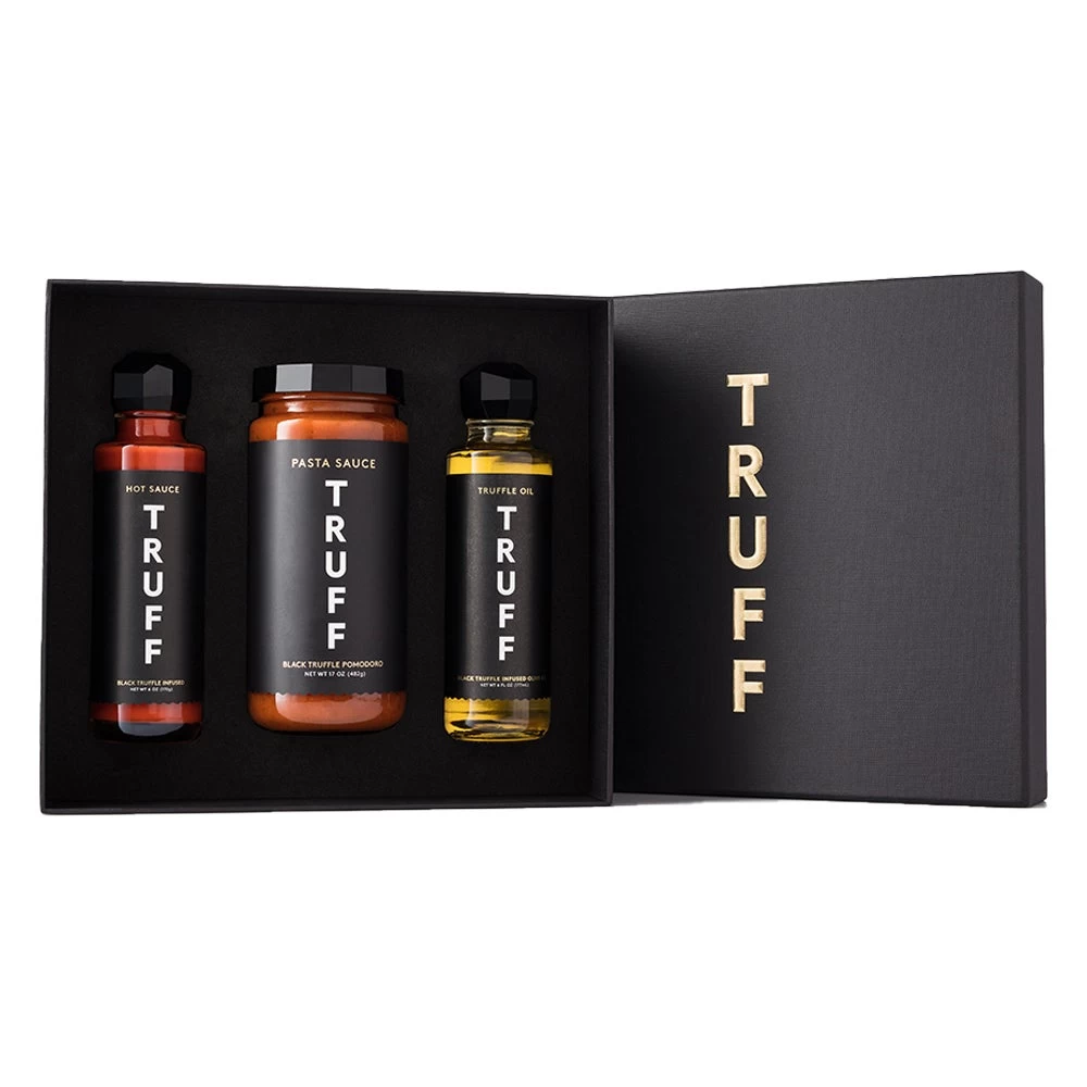 Perfect for any gifting occasion, this bundle includes our Signature Black Truffle Hot Sauce, Black Truffle Pomodoro Pasta Sauce, and Black Truffle Oil encased in a beautiful VIP box.