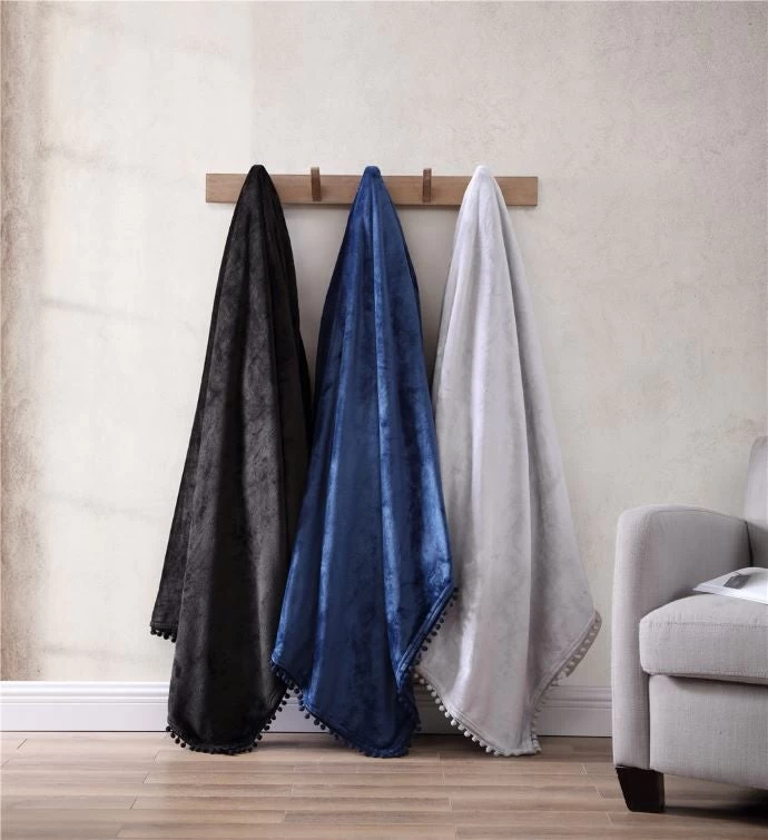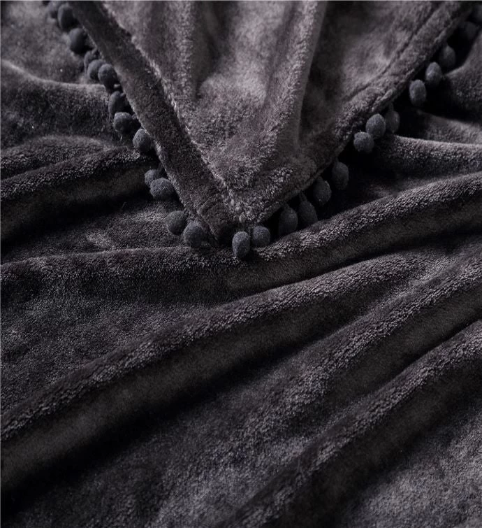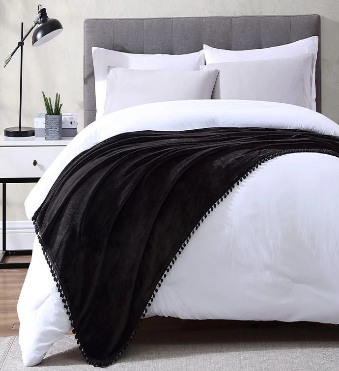 Add timeless and fun style and some extra comfort to your bed, couch, or favorite chair with The Nesting Company Walnut Flannel Pompom 50″x70″ Throw.