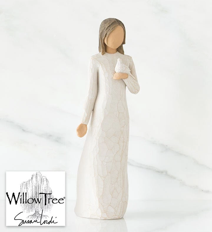 Our beautiful Willow Tree figurine is a gift that expresses sympathy, comfort, remembrance and healing. Holding a dove in her hands, the intricately carved statue includes a special message card that reads, “May your memories bring you peace.” Created by artist Susan Lordi, this cherished keepsake is a precious reminder of someone we want to keep close or a memory we want to touch.