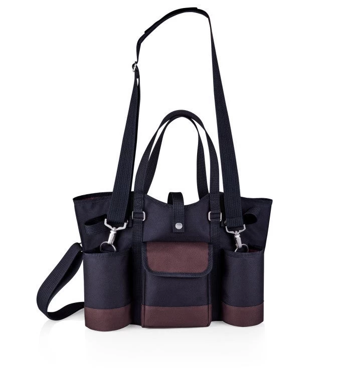 When you spontaneously decide to whisk your lover away for a romantic weekend, the Wine Country Picnic Tote Bag with Cheese Board is ready to grab and go, featuring a two-bottle wine bag and picnic set with wine and cheese service for two, a large compartment for food and sundries, an adjustable shoulder strap, and two sturdy carry handles. This wine and cheese carrier includes a hardwood cutting board, a stainless steel cheese knife with a wooden handle, and a waiter-style corkscrew. Make any country your wine country with this elevated canvas picnic basket set!