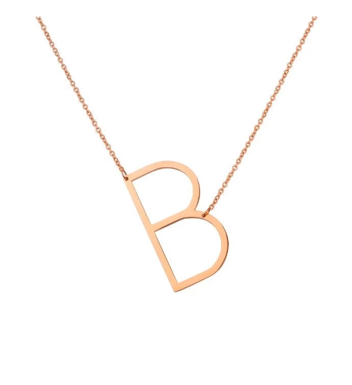 This large initial letter necklace is eye-catching and will make a statement paired with any style. The necklace can be worn with everyday wear or on formal occasions. Simply stylish and comfortable. Great for layering. The sideways initial letter necklace is available in silver, gold, and rose gold colors and comes polished. The large letter necklace is gorgeous and Minimalist which makes it a popular gift to give during the holiday season, Christmas, birthday, or anniversaries.